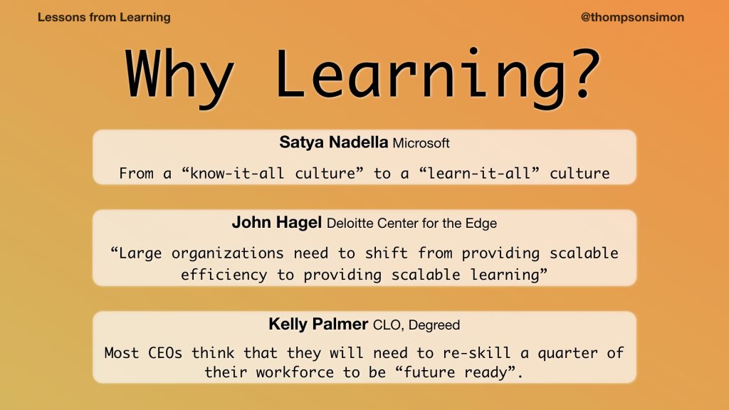 So, why learning? I’ve come to think that learning should be core to the digital workplace. It’s a massive area, yet we can start with a few small steps.