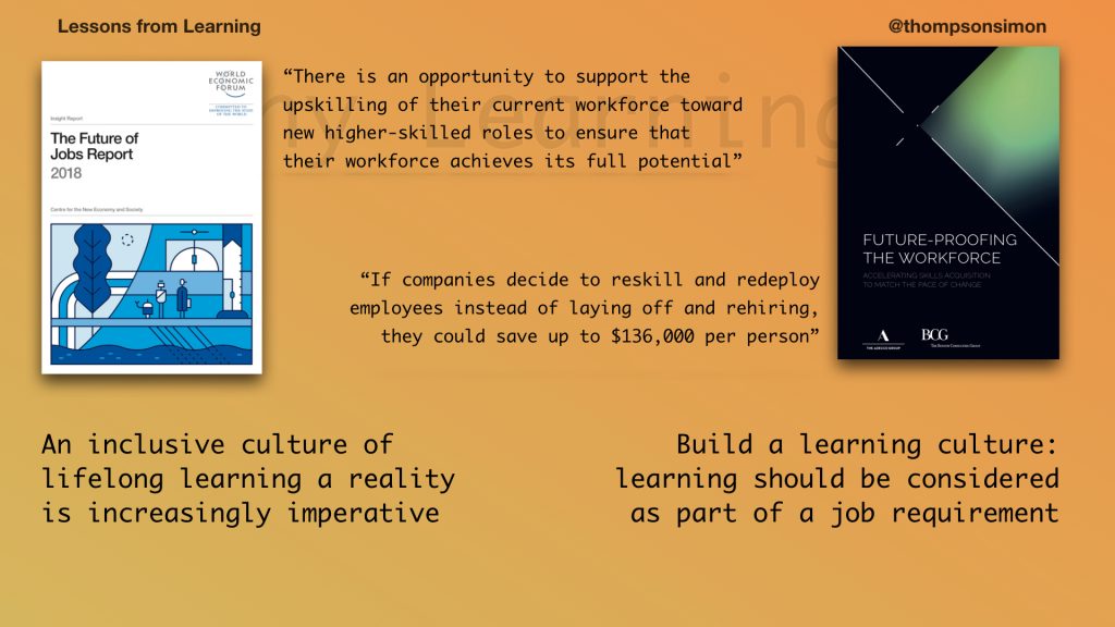 What I like most is the idea of employees managing their own learning. I’ve not touched on digital literacy, I do think it’s important, but I don’t think we should just be teaching digital skills for today’s technology, but also teaching the skills that will help people continue to learn as technology changes.