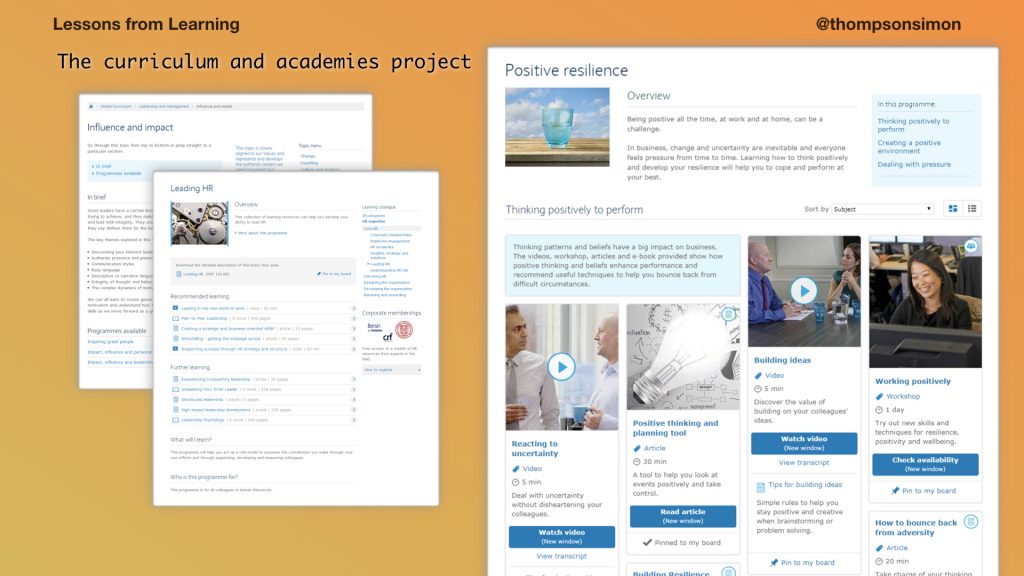 To be truly useful, the Global Curriculum, as it was then called, could not be all things to all people. The vision was to build academies with curated content for specific employee groups, each built on the foundation of the existing shared content.